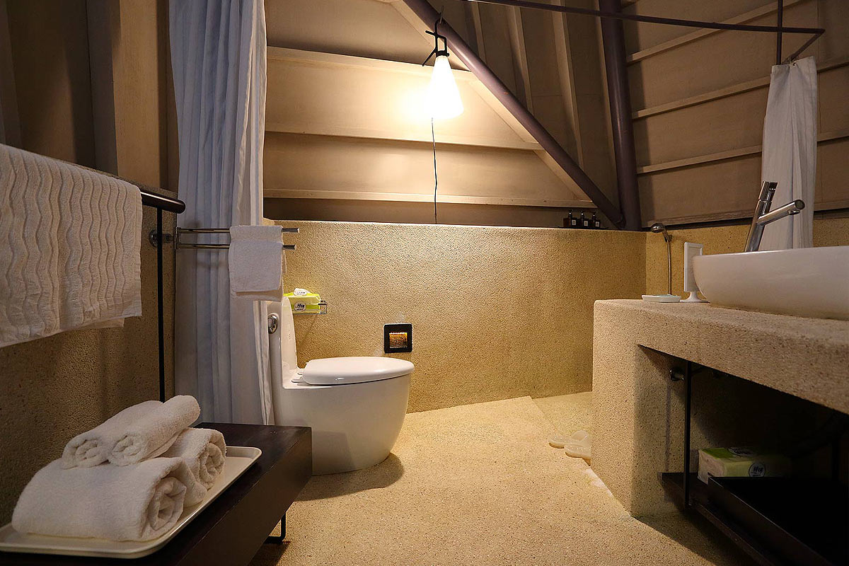 3. 房間為開放式空間,臥房和廁所間無隔間,僅有拉簾相隔,且房型於山林間濕氣較重,請務必考量是否適合入住!